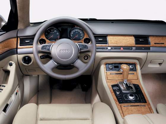 新 A8 系列突出了以下幾個特征:豪華的裝備,弧形的表面鑲嵌上恰到好處的線條。扁平的車頭及短短的車身懸垂,再加上高蹺的尾部,無不表達了 A8 的運動特征。A8 對于購買者的其中一個吸引力是他樸素的外觀,然而事實上,當你座進駕駛室駕駛該車的時候,你會發現這樣一輛動力強勁的車子駕駛起來卻相當輕巧,這才是他真正吸引人的地方。