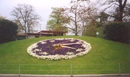 瑞士人民對“花鐘”的設計,頗為自豪,日內瓦市的地圖,就采用“花鐘”作為該市的標記。在瑞士其他許多城市的公園里也都可以看到這種“花鐘”,但只有日內瓦的“花鐘”才是真正的“始祖”。