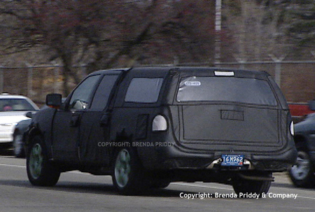 盡管業(yè)界對福特Expedition加長版的問世已經議論紛紛,但是它的真車照片近日才被泄露出來。福特Expedition在福特陣營中屬于大型SUV,而Expedition加長版的車身長度比普通版Expedition增加了約16英寸,所以可以當之無愧的稱為“越野巨無霸”了。(圖片可點擊放大) Expedition加長版預計2006年正式推出,該車會再次基于優(yōu)化過的福特F-150平臺進行開發(fā)。照片中的這輛樣車據(jù)說配備了V6柴油發(fā)動機,預計在2007年以后將會配備6.2升V8 Hurricane發(fā)動機。