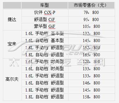 記者獲悉,調整后的捷達、寶來、高爾夫的終端零售價分別為: