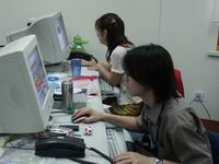 第四站請上七樓,我們的網站上海編輯部到了,編輯們都在忙碌著,既有Pconline的上海編輯部也有我們的Pcauto的上海編輯部,這些Pconline的編輯可是在業內響當當的人物哦,我相信通過我們不懈的努力我們太平洋汽車網也會成為業界最成功的網站之一,這是我們一直以來堅信,從來沒有更改過的信條。其中除了我們的編輯以外,我們的美術編輯也是要特別介紹的,因為那是網站的另外一個非常重要的方面,就是網頁和圖片的制作,相信大家對于我們網站的風格都十分的熟悉,專題的banner的那些美輪美奐的圖片都是出自他們的手筆,先認識一下吧,小燕和小海,我們的美術編輯。當然還有我們的領航員,上海編輯部的負責人:大寶。