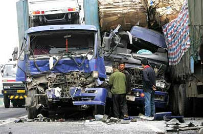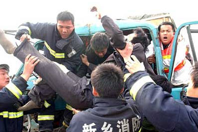 “如果間距有40米,他就能剎住車了!”眼看著同伴的鮮血,一名司機痛心地說。昨天早上約7時許,京珠高速公路河南新鄉段因大霧短時間內發生十多起汽車追尾事故,造成該段京珠高速公路向南行駛方向一度封閉。據了解,事故相撞車輛在百輛左右,數百輛車滯留了10多個小時,綿延數十公里。事故原因是由于當時公路上時強時弱的團霧所致。有關部門雖全力搶救,仍有4人被奪去生命。
