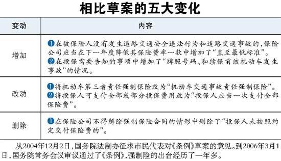 在經過近兩年的漫長等待后,備受關注的強制三者險終于正式出臺,不過已經更名。昨天,國務院下發第462號國務院令,正式對外公布《機動車交通事故責任強制保險條例》,并宣布該條例將自2006年7月1日起施行。