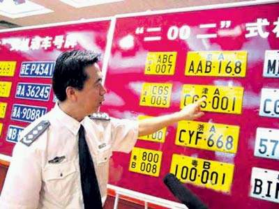 二○○二式機動車號牌 | 杭州市與北京、天津、深圳等共4個試點城市,同時推出“二○○二式機動車號牌”,即私車個性化牌照。所謂個性化牌照,就是車主自行選取英文字母和數字進行排列組合。注冊時類似于注冊電子郵箱,只要是無人使用的組合,便可注冊成功。一旦注冊成功,就像居民身份證,可以終身不變,一直使用。新車牌的大小比現用車牌要短,但略寬。新車牌是采用系統面膜和專用反光膜制作,具有系統安全性和信息性、系統環保性能和系統可操作性,并且有專門的防偽暗記。私車上該牌的費用和手續依舊,杭州市城區及各縣市將分四個階段實行。
