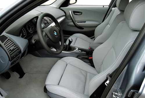 從內裝上看來,1系列很難擊退MlNI的繽紛特點,采用皮布混合的雙色座椅,搭配環繞車內的類鈦金屬飾板,顯得平淡無華,惟一可以稱道的除了組裝質量之外,大概就剩下方向盤中央藍白廠徽所帶來的虛榮感。