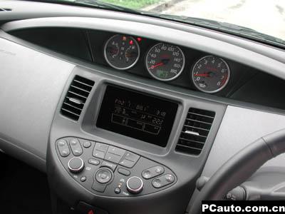 3個圓形儀表在控制臺頂部正中央,音響及冷氣相關的按鈕歸 納在一個傾斜的操控平臺上,整個中控臺的設計意念很好