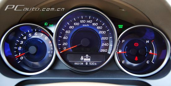 儀表盤顯示屏可以實時顯示瞬間油耗、平均油耗、平均車速、行駛里程等內容,更吸引人的是它可以實時的顯示SH-AWD的扭矩分配情況。