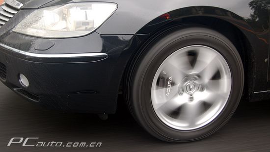 在輪胎方面,對于Acura RL來說也是一個突破,這是Acura有史以來裝備的最大規格的輪胎,原裝輪胎為Yokohama 235/50R17 100W,17x8.0英寸鋁合金輪轂,通過SH-AWD系統的配合,輪胎性能得到充分的發揮,過彎的性能更加出色。