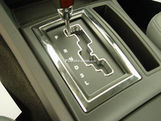 來到300C的儀表盤部分,300C的儀表盤做的是比較特別的,鍍鉻裝飾環,典雅之中有不失動感,白色的面板再加跑車化的設計,讓人坐上去就想點火啟動。變速箱箱采用蛇型設計,讓駕駛者在城市的走走停停中不用擔心掛錯檔,檔桿采用桃木加真皮設計,手感十分的好。克萊斯勒300C的天窗采用一鍵式按鈕,在陽光明媚的郊外打開天窗還能為乘駕者添加幾分好心情。