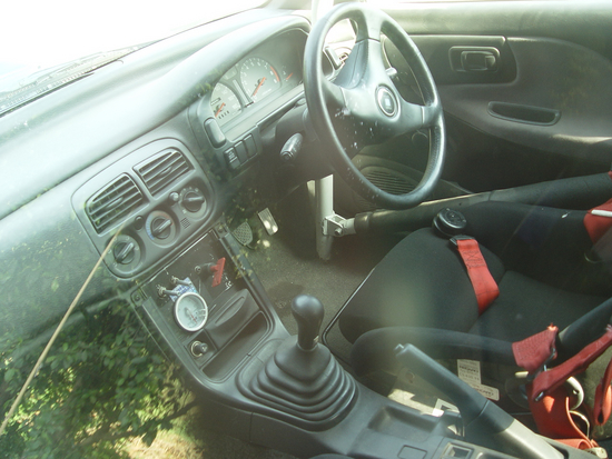 車內延續了富士藍的主色調,STi采用了藍黑雙色座椅,以及黑色和銀色兩種金屬裝飾,給人感覺要比Evo更為高檔一些。座椅都是藍色小山羊皮,然后中間是大大的粉紅 Sti 標示,美觀之余還能緊緊包裹身體,舒適之余則能保證車輛信息從四面八方透過四肢皮膚傳輸到駕乘者的大腦。椅子周邊則是 2005 款專用的黑色新式材料包裹,摩擦系數恰到好處,手感舒服。