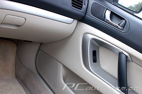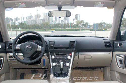力獅Wagon的內飾設計與三廂版幾乎完全一樣。黑色的中控臺和排檔底座、紅色的背景光加上液晶屏上的白色字體,顯得很酷。斯巴魯依舊沒有給力獅2.0R安裝上帶有“MOMO”印記的三幅式方向盤,但這個真皮方向盤的手感同樣不錯,且要比老款力獅更為粗壯。方向盤的右側為定速巡航控制鍵,不用翻看說明書,簡單易用。左側音響控制還是為3.0R所獨享,看著方向盤左側突兀的銀色飾板,實在有失美觀。