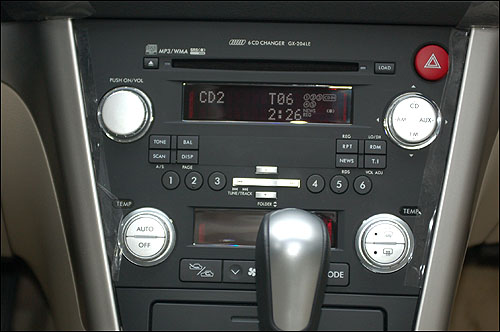駕車長途旅行,要想愜意一點音響自然是不可或缺的。力獅Wagon的原廠健伍機頭不但可以吞下6張CD,而且還支持MP3和WMA播放,可以讓你一路之上總音樂陪伴。另外音響系統還擁有SRS環繞音效,也算是一個小小的驚喜。但同時這套音響系統也暴露出來兩個明顯的問題,首先是揚聲器的功率較小導致音樂表現力非常一般,第二就是音響系統與中控臺一體化的設計增加了日后音響升級的難度。力獅的中控臺上還保留著那個多功能顯示屏,它可以顯示平均油耗、實時油耗、車外溫度、剩余歷程等信息,非常實用,且經過測算油耗顯示比較準確。