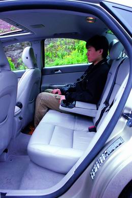 | 前排座椅為電動(dòng)調(diào)節(jié)并帶加熱功能,雖然車身尺寸較小,軸距只有2640mm。 | 后座腿部空間不甚寬裕,但作為家庭車也足夠用了 |