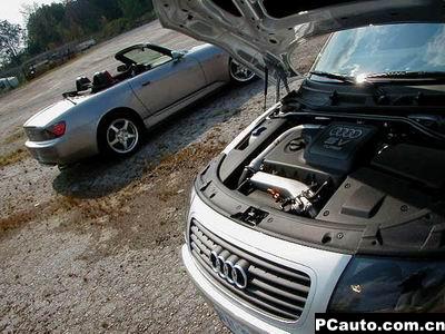 一旦跨入奧迪車舒服的駕駛室,把發動機點上火,大眾袖珍的柴油發動機就象有了生命般隨時準備出擊。225馬力的TT排氣聲音更低沉,降檔和高速運轉時發出轟鳴。對4缸機來說它的聲音就象男中音般優美。戶外駕駛時增壓器發出的激動人心的巨響也常伴左右。