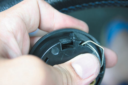 接著將喇叭蓋裝上,并將電線的另一頭綁在喇叭按鈕上的其中一個端子上