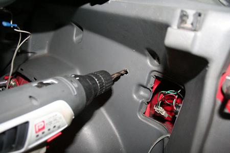 然后再將線路拉至圖中所示之處,并穿過右側(cè)飾板,從方向燈開口處拉出。