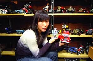 ■收藏軼事 胡同里的偶然 在1998年陸虎汽車公司曾推出了一款為紀(jì)念陸虎汽車50周年而生產(chǎn)的汽車模型。當(dāng)時(shí)孟南蒂和她的老公都還沒有迷戀汽車的收藏,幾年之后的某天,他們偶然遇到了一位志趣相同的人,因?yàn)槌鲇谒麄儗﹃懟④嚨南矏郏吮阌袡C(jī)會(huì)獲得了此款紀(jì)念版,在展示這款車的時(shí)候,她打開的動(dòng)作好像電影里的慢鏡頭,直到看見了車身的軍綠色和黃色的帆布蓋,才讓人懸著的心放了下來。 在孟南蒂的世界里有三樣?xùn)|西很重要:孩子、老公、還有老式玩具。 讓她拿出她最喜歡的一件玩具時(shí),她捧來了一輛三十厘米大小、完全鐵質(zhì)的老式仿舊拖拉機(jī),加上車身看上去銹跡斑斑的橙黃色,這輛“老”味十足的拖拉機(jī)讓孟南蒂第一次有了燦爛的笑容。 隨后她把這些上個(gè)世紀(jì)三十年代到五十年代出現(xiàn)的大小玩具車,一輛輛小心翼翼地“開”到了我們面前,但某些汽車的包裝,她說什么也不肯拆開,她的解釋是,玩具的包裝價(jià)值在某種程度上要遠(yuǎn)遠(yuǎn)超過玩具本身的價(jià)值,因?yàn)榘b上的名字、發(fā)行限量、生產(chǎn)年限都是一個(gè)物品的價(jià)值體現(xiàn),沒有了這些,玩具便沒有了年代感,同時(shí)也就失去了收藏的意義。
