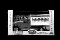 可樂車:只有一厘米左右大小的可樂瓶整齊地排列在全紅色的車廂上,這些用透明玻璃制成的瓶子,即使裝上真正的可樂,瓶子本身也不會變質,只是孟南蒂要心疼了,她說這款(玩具)車已經找不到另外一輛了,她自己連包裝都不忍心拆開,在記者拍攝的時候,她也要求連帶著包裝一起拍攝,惟一的理由就是,外包裝給這款美國上個世紀三十年代專門運送可樂的車提高了40%的價值。