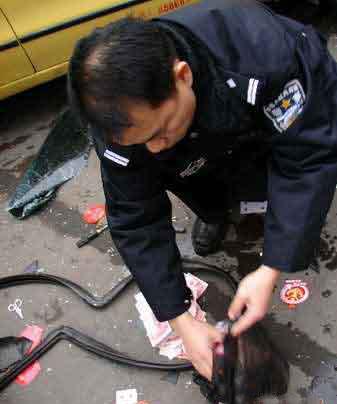 這時,正好身著便衣的九江市水上公安局副局長陳先經過此地,目睹眼前的情景,立即向圍攏的市民表明身份,動員市民們一起來維護現場,搶救傷員。隨后,市民們有的自覺拉起了警戒線,有的看護著地上的鈔票,有的撥打110報警。幾分鐘后,急救車趕到了現場,將兩名摔出車外的傷員抬到車上,但卡在車頭里面血肉模糊的司機卻動彈不得。隨后,消防人員攜帶特種工具趕到現場,對變形的車頭進行切割。幾分鐘后,終于將奄奄一息的司機搶救出來。事后,民警將收集起來的鈔票進行清點,發現20萬元巨款一分不少。