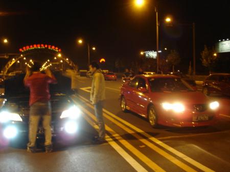 日前,某論壇上發布了一則帖子,主題是邀約飆車愛好者參加1月20日在亦莊舉行的一場被喻為“2006年春節前最后一場直線04”的汽車比賽活動。當晚,記者在現場看到,近40輛改裝車聚集在一起,觀戰人數達五六十名。然而,在比賽即將開始前,一輛警車趕到現場并驅散車隊,該比賽最終未能如期舉行。