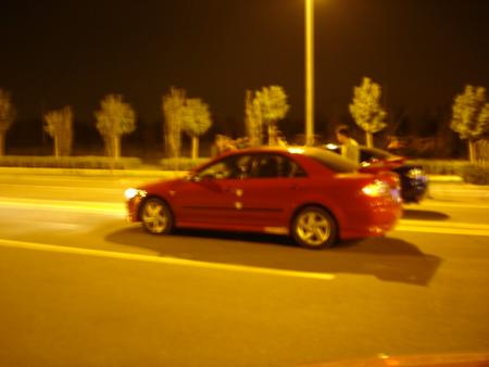 1月20日晚9點40分,北京亦莊經開國際汽車廣場的黑暗突然被一束束白色的車燈光照亮,隨即汽車排氣管發出的低沉的轟鳴聲夾雜著高扭力發動機傳出的嘶吼聲徹底打破了廣場上空的寧靜。只見一輛黑色的車在一個急轉彎后戛然停在了路邊,柏油路面上隨即留下兩道清晰的黑色剎車痕跡。這輛黑色汽車,從外表已經很難看出是一輛馬自達6,車身被裝飾得更像一輛賽車,扁平的輪胎,低低的車身以及一對白得發紫的燈光。