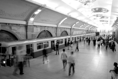 據導游介紹,平壤地鐵自1969年開建,歷時4年,1973年建成通車,分千里馬線、革新線兩條線路,運營里程達37公里,主要連接居民住宅、公園、體育場等公共設施。記者乘坐了千里馬線的其中一段,地鐵內部裝修較為豪華,但通風、采光不算太好,人流量很大,與國內地鐵相比,除一些輔助設備和商業設施與國內有差距外,其余差別不是很大。