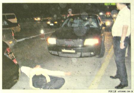 事發地點位于機場高速國門收費站。王先生所乘車輛的司機鄧先生說,當時自己開車剛停在收費站7號口的過道里,后面就來了一輛黑色奔馳車,“突然故意剛右側兩個車門間的部分,生生別過我的車,沖到了前面”鄧先生稱,當時小王按照美國多年生活的習慣,拿起棚機,拍下了事故現場,想提供給警察作為證據,誰知激怒了奔馳車司機,于是,他下車后,不客氣地說:“我就是要撞你們。”然后當作什么也沒發生似地想離開現場。“王先生上前攔住對方,讓他在現場等待警察來處理事故。可是奔馳的司機卻打電話叫來了一輛沒有牌照的奧迪A6,上車后就想開走,于是,王先生坐到了奧迪車前,阻止該車開走。誰知奧迪車的司機,上去就是一腳,把王先生踹倒在地上,隨后又是一陣狂踢,直至他全身開始不停地抽搐。”鄧先生說。