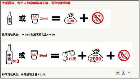 正是由于酒后駕車可能導致的嚴重后果,各個國家都對酒后駕車執行了嚴格的規定。我國的相關法律將酒后駕車分為飲酒駕車和醉酒駕車。飲酒駕車和醉酒駕車是根據駕駛人員血液、呼氣中的酒精含量值來界定的。所謂飲酒駕車,指駕駛員血液中的酒精含量大于或者等于20mg/100ML,小于80mg/100ML的駕駛行為。所謂醉酒駕車,指駕駛員血液中的酒精含量大于或者等于80mg/100ML的駕駛行為。
