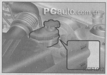 應定期檢查制動油儲油罐內的制動油量。油面應在制動油儲油罐側面「MAX」與「MIN」標記之間。若油面低于「MIN」標記,需補充制動油。