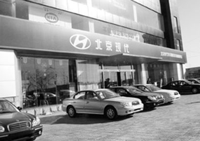 上午9:30,記者來到了位于海淀區(qū)杏石口路21號(hào)的現(xiàn)代汽車鵬奧特約銷售服務(wù)店。這里是現(xiàn)代汽車北京市首批4S特約銷售服務(wù)店之一,于2002年年底開業(yè)。銷售服務(wù)大樓占地8000平方米。雖然展廳外有一個(gè)停車場(chǎng),但已經(jīng)被占的滿滿當(dāng)當(dāng),其中待售的車占去了一排位置。在保安的指點(diǎn)下,記者把車開進(jìn)東側(cè)一條已經(jīng)停放了很多車的小胡同里。