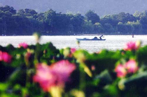 進入曲院風荷的院子,一開始是亭臺樓榭,綠柳繞堤,偶有小池荷花盛開,分外鮮研。沿著曲折的石子路或者小橋走去,拐過一座水榭,眼前突然開闊,滿池滿眼的碧葉紅花,望之無盡。深紅色,淡紅色的花瓣,映襯著翠綠的荷葉,在陽光下映得分外嬌艷,果然是“接天蓮葉無窮碧,映日荷花別樣紅”呀。