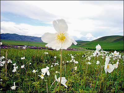 夏天,草原很早就天亮,很晚才天黑,幾天之中,我們都被融入了那片一望無際的綠海,那種寬廣和茂盛的綠色是我們前所未見的。草原的開闊松弛了我們的神經,而散落在草原處處的羊群、馬群和牛群又叫我們感到生活的平靜與恬適。這是從古以來沒有被開發耕種過的草原,只有藍天、綠草和緩緩起伏的原野。