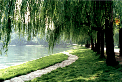 玄武湖中分布有五塊綠洲,形成五處景區。一為環洲,步入環洲,碧波拍浪。細柳依依,微風拂來,宛如煙云舒卷,故有“環洲煙柳”之稱。