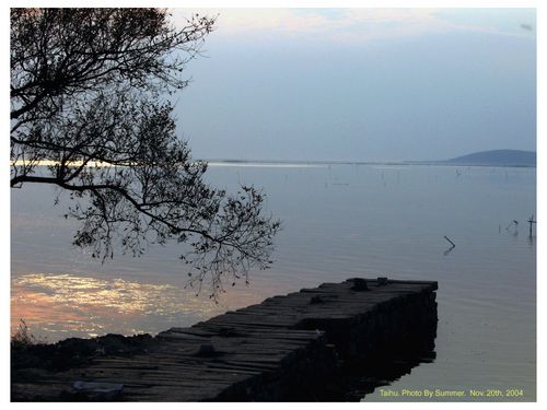 幾年以后,一個難得的機會使我真正領略到屬于太湖的風情。那地方叫龍頭渚。沿著湖邊的石頭走上一段,滿眼的水,滿耳的濤,竟讓人想將自己也融進其中。這讓我改變了原來對太湖的看法,竟發覺不自主的有那么一點點喜歡上它了。