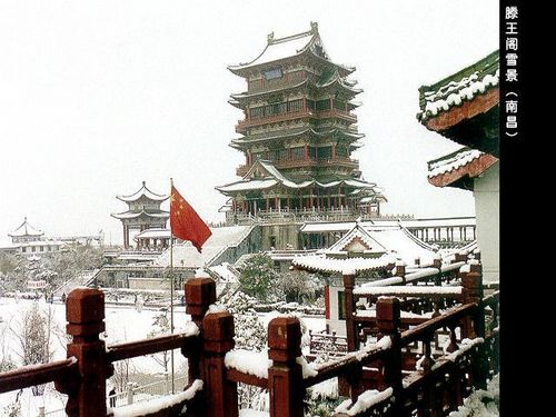 滕王閣位于沿江北路與疊山路口的南邊,這里也是贛江與撫河的匯合處。自古它就與黃鶴樓、岳陽樓和蓬萊閣并稱為四大名樓。因唐太宗李世民之弟--李元嬰始建而得名,因初唐詩人王勃詩句“落霞與孤鶩齊飛,秋水共長天一色”而流芳后世。
