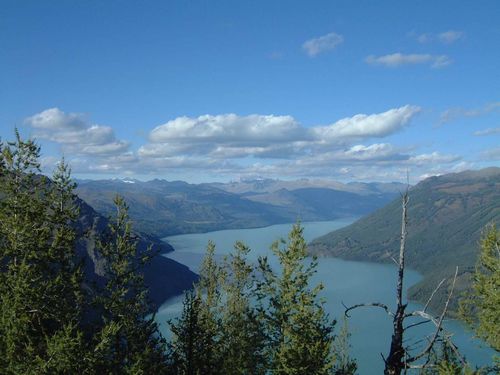 早晨8:30我們從烏魯木齊就出發(fā)了,車子在山路上盤旋而行,首先映入眼簾的是那樹(shù)葉已經(jīng)開(kāi)始變黃的漫山遍野的冷杉樹(shù),在午后陽(yáng)光的照射下,閃耀著秋天時(shí)節(jié)特有的光澤。一條奔騰的河流從山谷間蜿蜒而出,那水是冷冷的藍(lán),一望便知是由冰雪融化而成,雖然站在很高的地方俯視它,也能感覺(jué)到絲絲的寒意。這里碧水晶瑩,山巒起伏,森林密布,景觀秀美。湛藍(lán)的天空下,玉帶般的喀納斯在冰川雪嶺下蜿蜒而過(guò),積蓄成湖,與蒼郁的森林和盛開(kāi)五顏六色鮮花的草原融為一體,讓人心馳神往。